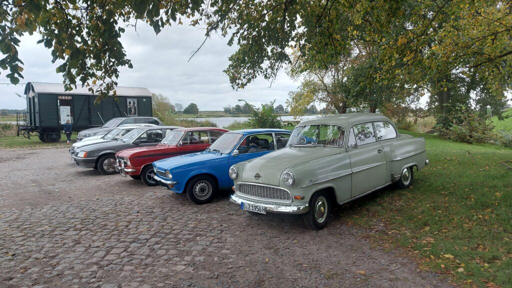 Unsere Strecke führte großtenteils über ruhige Landstraßen durch das Oderbruch. Die herbstliche Landschaft war besonders schön anzusehen. Während der Fahrt konnten wir die Natur in vollen Zügen genießen und die Oldtimer liefen zuverlässig. Unterwegs begegneten uns immer wieder neugierige Blicke anderer Verkehrsteilnehmer und Spaziergänger.